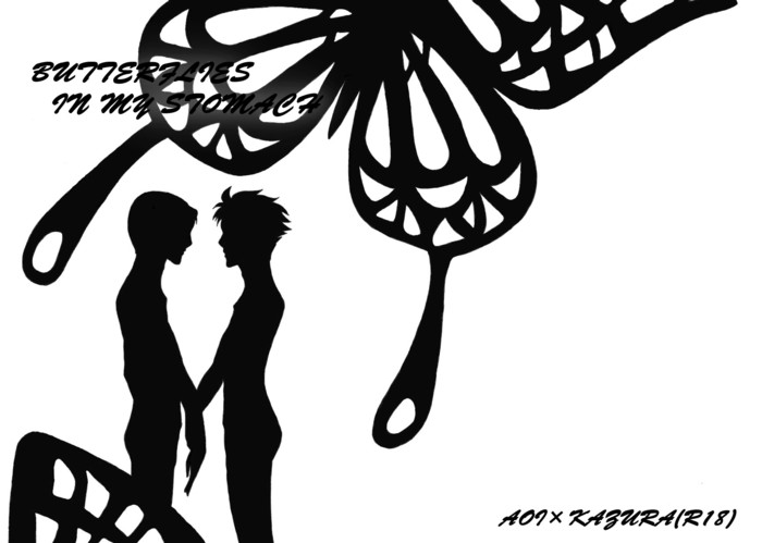 変態本の(←この呼び方もなぁ)表紙の紙色が水色らしく、そこに黒でシルエット絵をプリントしてもらいましたので、ちょっと背景に水色入れてみました